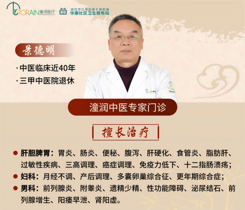 中医名家景德明,常驻于武汉潼润医院(汉口院区)坐诊,武汉潼润医院名老中医专家团队再升级。